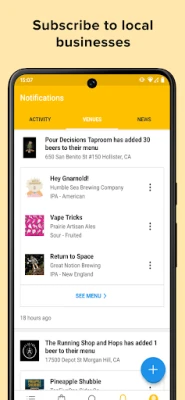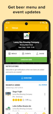 - Find nearby breweries, bars, and taprooms with live beer menus