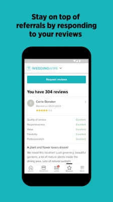 4. Reviews. Easily request and respond to reviews from couples to stay on top of referrals and keep your wedding business growing.