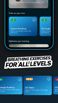 🤿 Progress logs and Apnea statistics: Track your personal apnea shape by recording tests. Access charts displaying apnea duration, and sort by date or record time. Use these charts to analyze your progress and automatically adjust trainings to improve your tolerance to carbon dioxide accumulation and lack of oxygen in each apnea session.