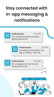 Check schedules and send text or email alerts to notify staff about the schedule or other important messages. Team members can swap, pick-up or release shifts with one click. Schedules and the roster automatically update with any manager-approved changes. NOTE: The HS Team application REQUIRES a valid HS Team user account through your EMPLOYER