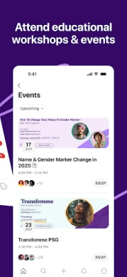 - Events & Workshops: Attend virtual events focused on topics relevant to your experience—like navigating name or gender marker changes, makeup tutorials, self-defense, and gender-affirming surgery—and browse a library of past sessions.