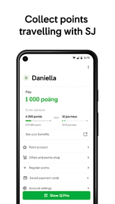 • Collect points when travelling with SJ