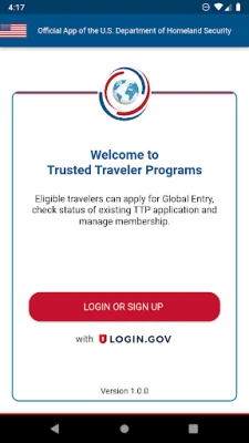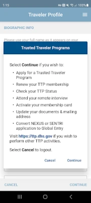 The Trusted Traveler Programs mobile application enables eligible travelers to apply for a Trusted Traveler Program to include Global Entry, check the status of TTP application and membership, update documents and mailing address, and attend scheduled remote interview.