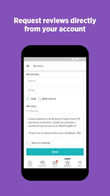 4. Reviews. Easily request and respond to reviews from couples to stay on top of referrals and keep your wedding business growing.